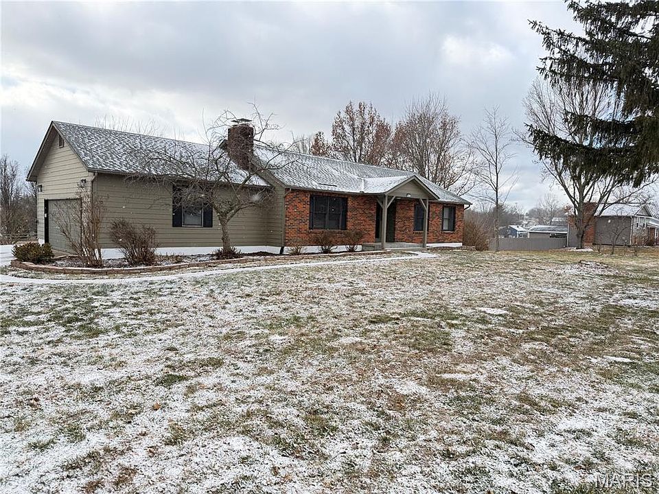 Welcome home to this charming 3-bedroom, 2-bath ranch set on a beautiful, level 1.5-acre lot. This well-maintained home lives larger than it appears and features new flooring throughout. The spacious living room is open to the foyer and anchored by a cozy brick wood-burning fireplace. A separate dining room offers access to an impressive enclosed porch with floor-to-ceiling windows—perfect for relaxing or entertaining year-round. The eat-in kitchen includes a pantry and ample cabinet space. The main level is complete with a primary bedroom with en-suite bath, two additional bedrooms, and a full hall bath. The fully finished lower level adds exceptional living space with a gigantic rec/family room, a versatile sleeping or flex area, and a large laundry room that also serves as ideal pantry or storage space. Conveniently located near the highway and featuring a 2-car garage, this cozy yet spacious home offers comfort, functionality, and room to grow.