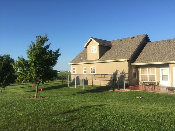 (FOR SALE BY OWNER) CALL JOYCE (913) 954-1617 1 1/2 Story Cape Cod on 10 Acres in Beautiful Setting. Open Floor Plan with Large Double-Hung Windows. Superb Oak Cabinetry (Owner was a Cabinet Maker) Multiple Rolling Shelves in Kitchen Cabinets and Island. New Appliances with Convection Oven ($4,200 value). Granite Countertops - Kitchen, Island and Laundry. Dining Adjacent to the Kitchen (Room for Large Table). Main Floor Laundry - Utility Sink/Cabinets/Clothes Rod. (3) Spacious Bedrooms (15 x 15) - (13 x 15) - (13 x 15). Main Floor Master Suite with a Large Private Bath. Master Closets with (4) Full Length Mirrored Doors. Three Bathrooms (Two Full Baths and One Half Bath). Spacious Living Room with 9ft Ceilings (18 x 20). Sunroom Sitting Room with AM/PM Sunlight (14 x 15). (6) Lighted Ceiling Fans with 3-Speed Fan Controls. Brand New 50-Year Roof & Gutters ($16,500 value). 3-Car Garage (24 x 30) Heated/Insulated/LED Lights. Rear Patio with Wonderful View & Eastern Exposure. Storage Room with Secret Shelved Oak Door (8 x 14). Pet Door Linked to Chain-Link Enclosure (10 x 30). Exterior Steel Storage Building with Shelves (28 x 20). Indoor Access Underground Concrete Storm Shelter. Kitchen Appliances & Window Treatments All Remain. Call Joyce to View (913) 954-1617