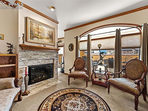 Welcome to this EXTRAODIANRY CUSTOM RANCH PATIO HOME. METICULOUSLY DESIGNED for serene living, step into a world of unrivaled LUXURY, nestled in the prestigious GATED COMMUNITY of LA POSADA DEL SOL, just moments away from the INFAMOUS GARDEN OF THE GODS and the quaint little city of Manitou Springs, with views of KISSING CAMELS AND PIKES PEAK. LOCATION, LOCATION, LOCATION with easy access to I-25, and hiking trails that gives you that COLORADO LIFESTYLE. As you walk up the steps you'll be welcomed by the COZY FRONT COURTYARD. Upon entering you will note that nothing is spared from the CUTOM STAIR RAILING to the kitchen to the outdoor deck. This home exhibits CLASS and SOPHISTICATION throughout and it is a true ranch home with a full basement. The heart of this home lies in its updated GOURMET KITCHEN, a great place for those gourmet CHEF'S. BEAUTIFUL CUSTOM soft-close CABINETS, pull outs, & cement countertops. The FORMAL DINING is open with walk out patio doors to the courtyard. What a TRUE indoor & outdoor LIVING with 2 large walk outs to the back patio area. The alluring CENTER FIREPLACE is the focal point of the home. with a formal setting area and a formal living room to each side. The EXTRA LARGE primary retreat gives you space to unwind. An adjoining bath featuring COPPER SINKS, a CUSTOM CLOSET, and a soaking tub. The patio doors lead out to the PRIVATE DECK, that present the BREATHTAKING VIEWS of Rock Formations and elevated Pikes Peak. 2 other large Bedrooms finish out the main level. Bring all your ideas to the basement, it exudes a generous amount of space for all of you ideas. If you are looking for extra space for hobbies, storage or just want to spread out large furniture for those MOVIE nights, this is the home to consider. The COMMUNITY affords you amenities including a pristine tennis court and Community Center. You DESERVE to live in this UPSCALE LIFESYLE OF LUXURY AND COMFORT!