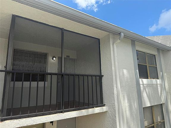 TOP FLOOR CONDO IN GATED COMMUNITY! As you enter, you'll be greeted by a private screened porch that leads to an open floor plan with a ceramic-tiled living and dining room. The kitchen is conveniently equipped with a pass-through, making entertaining a breeze. Both the living room and master bedroom boast a view of the gardens landscaping, complete with a tranquil trickling brook. This unit is the perfect oasis for relaxation and entertainment. Don't miss out! This condo association INCLUDES FLOOD INSURANCE and trash removal as part of their incredibly low HOA fee. On site recreation center with clubhouse, pool, spa, gym, gas grill, eating area, tennis court, pickle ball court and basketball court (with AC and league play). Feather Sound offers lots of green space with nature trails, playgrounds, park areas, soccer field and outdoor basketball courts. Take a leisurely stroll, a jog or a bike ride on the endless community sidewalks around the Feather Sound loop.