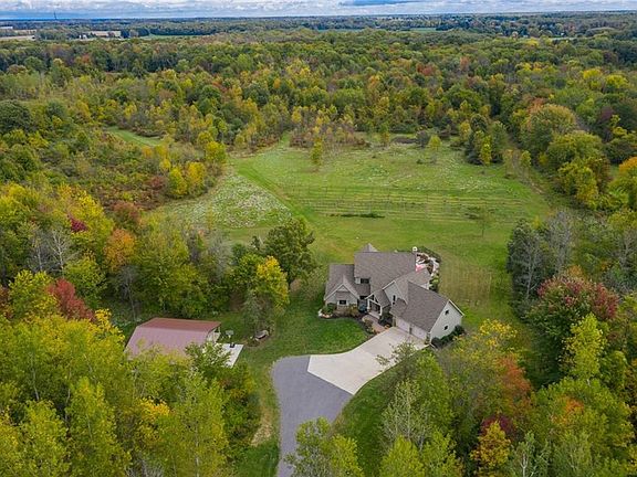 ENTERTAINERS DELIGHT! YOUR OWN PERSONAL RETREAT! Kendall School District. Welcome to this stunning custom built home on 75+ acres of privacy! Amazing curb appeal welcomes you inside the two story foyer. Soaring ceilings with exposed natural beams in the great room features stone fireplace with a wonderful view of the back yard. Cooks kitchen has an abundance of cabinet and counter space with professional appliances. Breakfast bar with seating adjacent to formal dining area. 1st floor master bedroom suite with tiled walk in shower! Upstairs you will find 2 ample size bedrooms, a full bath and a large unfinished bonus room. Lower level is finished with a custom bar and recreation area that has access to covered patio and in-ground pool. Attached garage and detached pole barn! Possibilities are endless! Make this dream, your new paradise today!