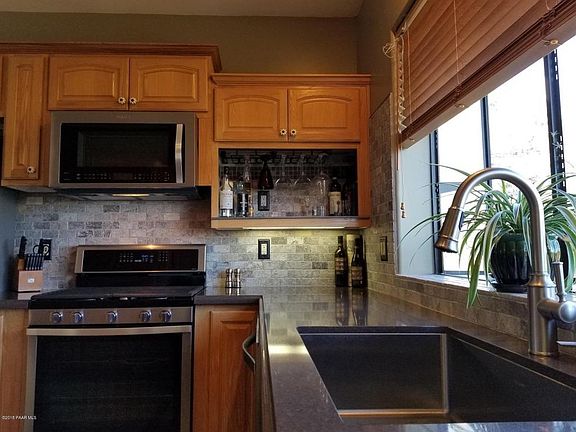 Majestic ski lodge feel in the pines of Prescott's highly desirable Thumb Butte neighborhood. This is an amazing custom home with gorgeous views from every window. There is a private balcony off a downstairs bedroom and a huge deck on the main floor. Feed deer from your completely fenced backyard. The master bedroom is so large it easily holds two queen size beds, a sitting area and room to spare! There have been extensive upgrades in the last year including all new flooring consisting of tile and slate, quartz countertops, new gas furnace, A/C, tankless water heater and new appliances, the list goes on and on. Three car detached drive through heated garage. This is a one of a kind must see!