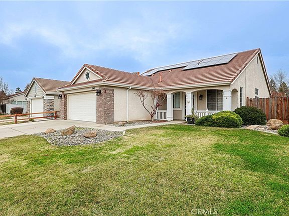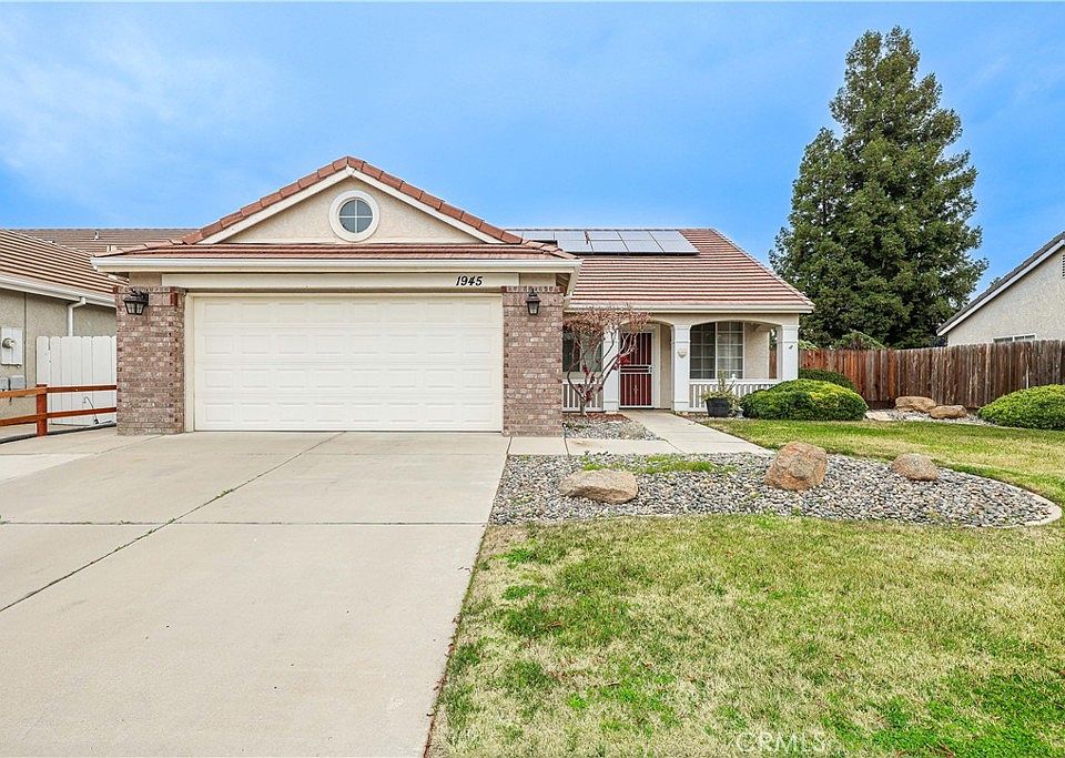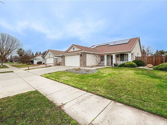 Welcome to the sought after Silverado subdivision in NE Merced! As you enter the neighborhood Bob Carpenter Park is on the corner and just 250 feet away from this home. All the benefits a wide-open space to enjoy and entertain with none of the maintenance. As you approach the home you will be welcomed by sharp curb appeal and extra space for parking. Once you’re in the home you will notice the beautiful luxury floors throughout and newer carpet in the bedrooms. The home offers 3 bedrooms, 2 baths (with an extra-large primary bathroom), separate living areas and a large dining area. The large kitchen offers an island which perfect for all your entertaining needs and cabinets galore, and it is open to the family room. This home is super clean and ready to move in. There is beautiful tile in the kitchen and the primary bathroom. The back yard is perfect for relaxing, starting a garden and enjoy your time by the firepit, and it's wired for sound (inside and out). All this and OWNED SOLAR!