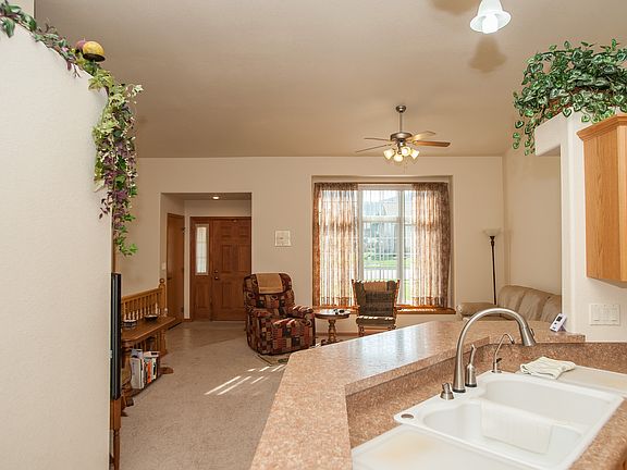 Extremely Motivated Seller! This 3 bedroom Townhome offers complete Main Floor Living, No Step Entry, 36" doorways, 2x6 Exterior Walls, 90% Efficiency natural gas furnace and central air, along with your own water softener and reverse osmosis system. 2 Huge Master Bedrooms with Master Bathrooms, 2 walk-in closets, Main Floor Laundry, Finished Basement with an additional 400sq ft of unfinished space for storage or as a work space. Oak Railing and Gate leads you downstairs, featuring a large family room with the 2nd master bedroom/bath, great for when company arrives for space and privacy! 30 year shingles, Trex decking off the dining room to enjoy the beautiful Black Hills right from your deck! HOA fees include lawn maintenance, snow removal and water for lawn. 55+ and older community.