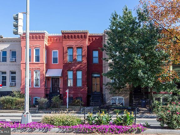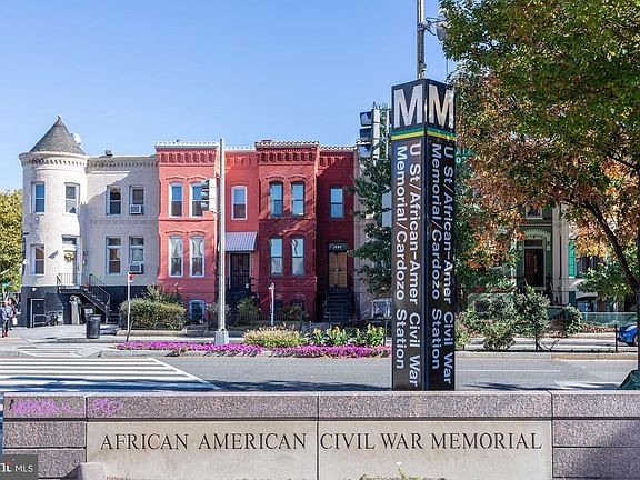 Outstanding Victorian facade characterized by exceptional brickwork & original cast iron stairway. It is noted that this property and several others on block have french doors at entrance leading to foyer. You will enjoy the original wood trim. On first and second levels there appears to be laminate flooring under carpeting and/or old hw floors. Second kitchen in basement has sink, cabinets, microwave, rough-in for gas range, 5 ceiling fans, french doors, original moulding, woodwork, etc. Sunny laundry area with full size w/d on main level; wall sconces on first level. Ceiling height ranges from approximately 7ft 6" in basement to 9ft 6" on upper levels. The rear yard is deep. Truly special location with views looking west down the U St Corridor; across from the U St METRO STATION. Sunny and bright English basement with high ceiling is an in-law suite, but can probably become a rental unit; fenced in parking for up to two cars; may require moving gate closer to house to improve access; lot has potential for constructing decks or for expanding home. Easy walk to all of U St amenities. Move right in and begin customizing your home now.