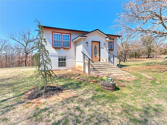More than five beautiful acres in Arcadia in up and coming Luther School District. Right off Route 66/East 2nd Street just east of Pops. A little glimpse into the floor plan of this unique bi-level property. When you walk in front door and you go upstairs for kitchen, dining, living, full bath and a small bedroom with closet. Downstairs is one big bedroom with closet and laundry area. There are two other rooms downstairs that do not have closets but are just dying to have wardrobes so they can be used as a bedrooms. All the downstairs rooms share a stylish rustic reclaimed wood wall bathroom with a shower. Home is on a well and aerobic system that was installed in 2006. It is in an unincorporated area of Arcadia so you have some options you wouldn't have in the city. Schedule your showing soon!