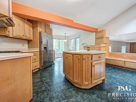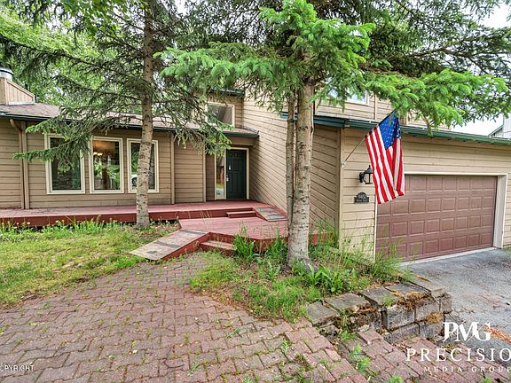 Contemporary Eagle River home priced well below tax-assessed value. Mountain views and walking trails line this private, cul-de-sac property in the quiet neighborhood of Eaglewood. This home has three decks, ample accent lighting, great storage, a workout room, and optional media room. Open-concept kitchen has an island with a bar, as well as built-in seating, great for entertaining. Easy commute