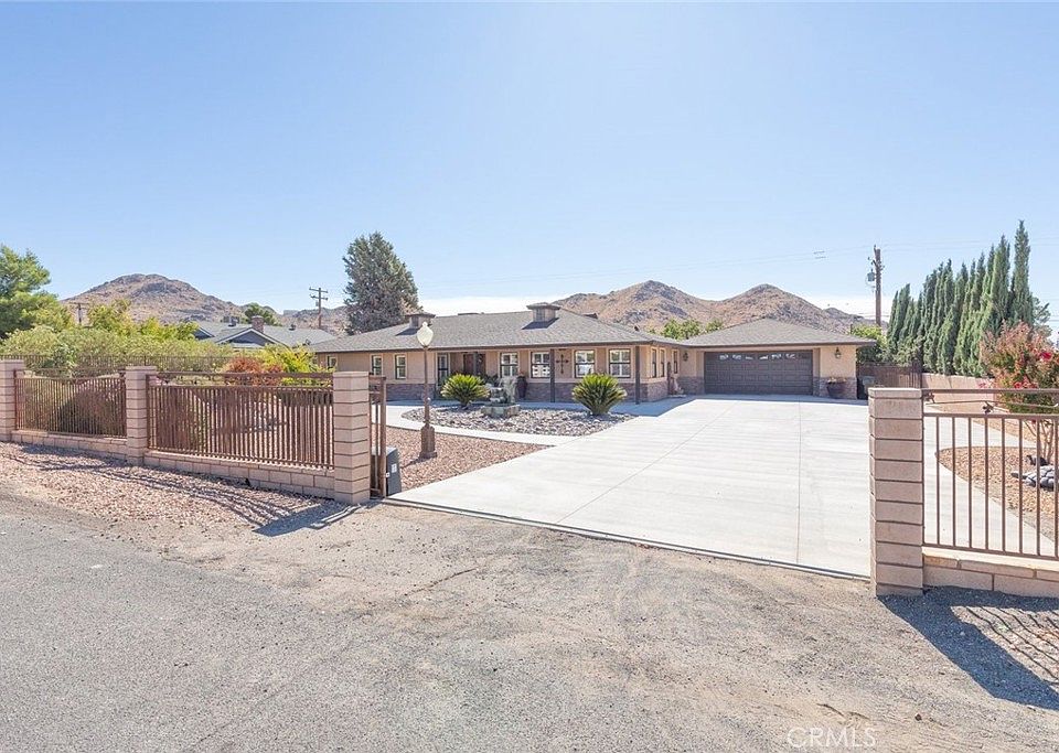 MOTIVATED SELLER...PRICED TO SELL! Gorgeously Landscaped Desert Ranch Home featuring $150k+ in UPGRADES shows True Pride of Ownership! Located in the highly desirable neighborhood of Desert Knolls, you won't find anything like this Private GATED 3 Bed / 2 Bath POOL Home...it's truly ONE-OF-A-KIND! Surrounded by a Wrought Iron Fence with Electric Gate for added Security and situated on a generous .36-Acre Lot, this UPSCALE Residence offers a Unique blend of Luxury and Functionality. The second you enter the Gate you are greeted by the calming sounds of a Water Fountain and immersed in the meticulously designed Draught-Tolerant Landscaping, which ensures Beauty with Minimal Upkeep. At night, enjoy the Ambiance and Convenience of all the Custom Outdoor Lighting and Lampost which lights up your OVERSIZED Driveway easily fitting up to 9 Cars and RV PARKING. Step inside this Single-Story Dream Home and discover a Spacious Open Layout with Solid Wood Beams and a Stacked Stone Fireplace in the Family Room that blends Comfort with Style. The REMODELED Kitchen is a Chef's Delight with Modern Appliances and Granite Countertops. The UPDATED Bathrooms are complete with Tile Showers and Contemporary Fixtures and Finishes. Elegant Plantation Shutters, Tile Flooring, Ceiling Fans and UPDATED Light Fixtures (including a Chandelier) throughout add a Touch of Sophistication. The expansive Primary Suite offers Additional Space for a Treadmill or Sitting Area, along with a large Walk-In Closet and the Custom Oversized Walk-In Shower with Dual Shower Heads provides a Spa-Like feel. French doors lead out to a Backyard Oasis, perfect for Entertaining or Relaxing. Dive into the sparkling POOL on a hot Summer day or sit by the Built-In FIREPIT on a cool Fall evening. Enjoy being outside year-round in this expansive Backyard with a large Covered Patio (complete with Ceiling Fans & Lights), an Aviary for Bird Enthusiasts, a Gated Vegetable Garden, and plenty of Fruit Trees (Apple, Fig, and Pomegranate) providing fresh produce right at your fingertips. This home is truly MOVE-IN READY and promises a Lifestyle of both Luxury and Ease...including Amenities such as Surround Sound, a separate Laundry Room with Sink, 2-Car Garage with Built-In Workbench and Epoxy Flooring, and a Large Built-In Fireproof SAFE. Don't miss out on this ONCE-IN-A-LIFETIME Opportunity to own the NICEST HOUSE in the NEIGHBORHOOD! (Click the "Virtual Tour" link to see the video walk-thru.)