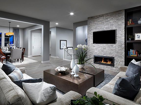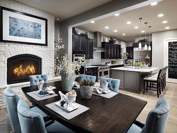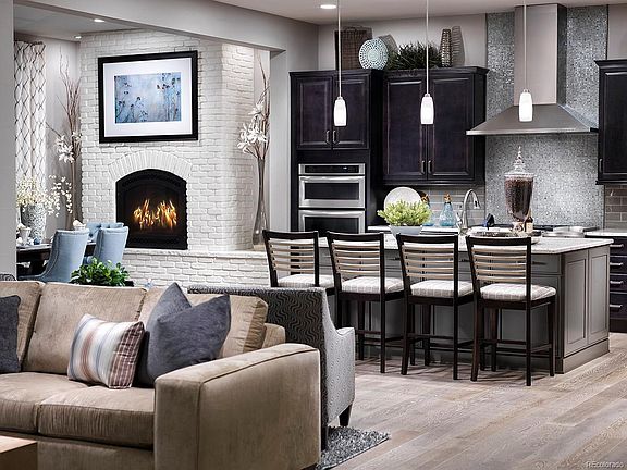 Professionally designed, luxury model home! Backs to open space; front courtyard; covered deck with gas line; chef's kitchen with KitchenAid appliances, charcoal stained cabinets, walk-in pantry, furniture style island; cosmo fireplace w/ bookshelves in great room and traditional fireplace in informal dining room; hand troweled wall texture; beautiful master suite with large shower; finished basement with rec room, oversized wet bar, kegerator and full-sized refrigerator; theater room with stadium seating, large screen and projector; walkout Basement with 10' ceilings. Finished 3-car split garage - (double bay with crank storage baskets and single car has built-in workbench). 1.678kW solar panel system included. Professionally landscaped front and backyard. Builder will install driveway and some front yard landscaping will be altered, otherwise home is sold as is. Check out the full 3D virtual tour. Love it as is? Furniture and decor is negotiable. Estimated closing/move-in is June.