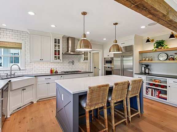 From the moment you step into this Modern Farmhouse, you’ll notice the thoughtful design & exquisite finishes that set this David Charlez Designs home apart. It features built ins galore, beautiful solid white oak floors on both levels, four fireplaces (three indoors) and special touches in every room, from solid wood beams and barnwood accents to wainscoting and shiplap. Nestled on one of Lakeville's most sought-after streets w/ beautiful homes and spacious private lots, you can walk or bike to schools, shopping, restaurants & trails. The chef-inspired kitchen is a true showstopper, featuring custom cabinetry, high-end appliances & a striking blend of quartz & soapstone countertops. A matching butler’s pantry offers generous prep & storage space—perfect for hosting. The open layout flows seamlessly into the dining area w/ custom buffet & a warm, inviting living room centered around a gas fireplace, solid wood beams & a cozy window seat. Retreat to the serene primary suite boasting its own gas fireplace and a spa-like bath complete w/ heated floors, a soaking tub, dual shower heads & a huge walk-in closet w/ custom built-ins. A private main-level laundry room off the large mudroom adds everyday ease & convenience. The lower level is ideal for entertaining w/ a spacious family room with gas fireplace, built-in full-size bar with custom zinc top & a media center for audiophiles. There are also two additional bedrooms sharing a Jack-and-Jill bath, a separate half bath, dedicated office for those who work from home, a flexible bonus room and generous storage. Step outside to an expansive patio w/ beautiful custom-built wood-burning fireplace overlooking the large, flat backyard. The garage features a tandem third stall for bikes, golf carts, bikes or car storage. Every detail has been carefully curated. Schedule your private showing today—homes w/ this level of thoughtfulness, practicality and quality are a rare find!