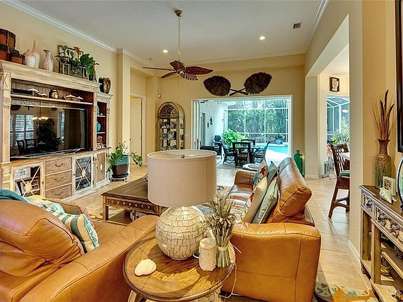 Stunning Wisteria Park pool home! Absolutely gorgeous and meticulously maintained. As you enter through the double front doors you will immediately fall in love with this great room layout that shows like a model home. Award winning floor plan offers two bedroom plus a den and has extensive upgrades including tile floors,crown molding,hurricane windows,wine cooler,butler's pantry,plantation shutters, pool cage recently rescreened, 12 ft ceilings,tray ceilings,pocket sliding doors & more. The kitchen has beautiful corian countertops,new backsplash,breakfast bar,eat in area with aquarium glass & new appliances.The split bedroom design is perfect for families or guest.The den is an ample size and could also be a third bedroom. Slip away to the master retreat after a long day and enjoy the sitting area. The master bathroom has dual sinks,garden tub and large separate shower. The gorgeous outdoor area is the focal point of the home. Sit out on the patio and enjoy a some lemonade or take a dip in the beautiful pool. Peaceful and private with lush landscaping. The half pool bath is conventiently located off the lanai for easy access. Wisteria Park also has a beautifully landscaped community gathering area, playground & gazebo for parties and special events. Simply relax in this lush NW Bradenton community or bike to Robinson Preserve or Desoto Memorial Park.Take a quick 10 minute drive to Anna Maria Island, stroll its sandy beaches, dine on the waterfront or take in a gorgeous sunset.