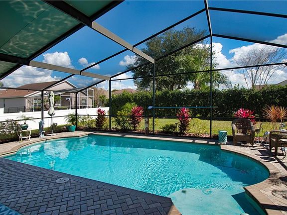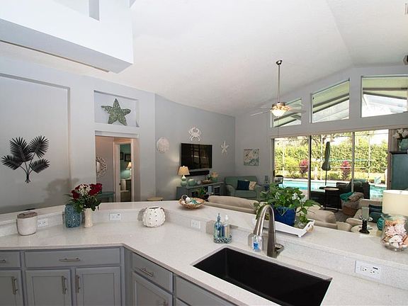 Welcome to this exquisitely maintained family-friendly pool home located in the heart of the popular gated community of Fox Wood. The home shows like a new model and features new landscaping and tons of curb appeal. The foyer features a double door entry, double French doors to the large front office/den, decorative niches and columns. The dining room is beautiful. The remodeled kitchen has stainless steel appliances with a gas stove, genuine quartz countertops, a center island, breakfast bar, closet pantry, lots of counterspace, and a breakfast nook all overlooking the family room and the inground solar swimming pool. The luxurious master bedroom has a sitting area with sliding doors to the pool and his/her walk-in closets. Pamper yourself in the remodeled en suite master bath with separate vanities, soaking tub and large walk-in shower. There are three generously sized secondary bedrooms, and an inside laundry with utility sink. Vaulted ceilings and wide plank wood look tile in the family and dining room. All baths have new Corian counters, sinks and faucets. Relax under the newly extended covered and screened, paved lanai with lots of shade and a tropical landscaped fenced backyard. Too many extras to list. Fox Wood has parks with playgrounds, picnic areas, a pavilion, basketball, top-rated schools, convenient shopping, restaurants, medical facilities, and of course the beaches. All Fox Wood roads were just repaved and there are no CDD fees or additional assessments. Come live the Florida lifestyle.