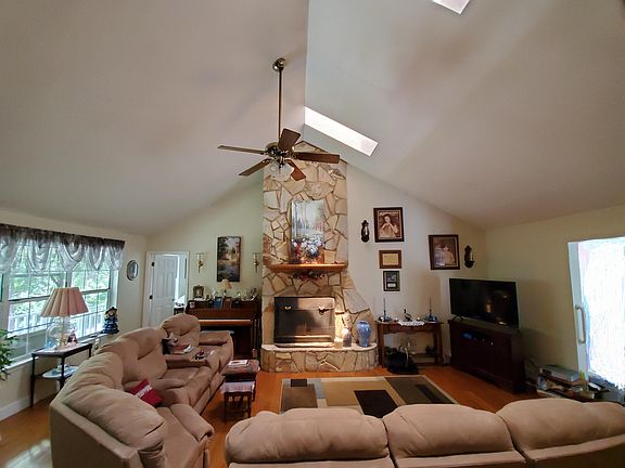Well maintained home nestled on private 2 acres+- country lot less than 3 miles from town. Great room features floor to Cathedral ceiling stone fireplace and hardwood floors. Kitchen has a work island with granite countertops, skylight, and the dining area overlooking big backyard, and neighboring equestrian property. Large Master suite opens to deck, and features 2nd Bedroom features a bay window with a window seat and custom wall paint (not wallpaper). Both bedrooms have beautiful hardwood floors and walk-in closets. Den with wood stove, large laundry room, and 3rd bathroom downstairs. Detached carport for RV or equipment storage. New roof in 2019. Freshly painted porch and deck.