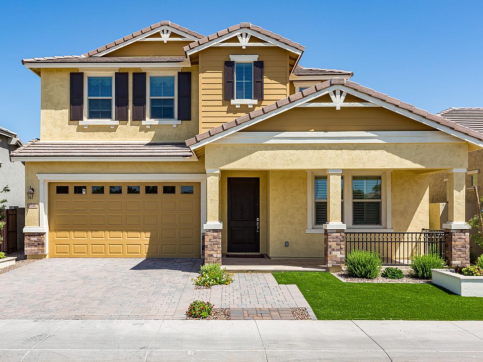 Last chance to own this highly upgraded former model home in Sirona that offers 4 bedrooms + den/office & 3 baths in 2924 SqFt with an open great room floor plan and upstairs loft. The kitchen features white shaker-style cabinetry, stainless appliances, gas cooktop, custom tile backsplash, stainless apron sink, island with breakfast bar, & large walk-in pantry. Multi-panel, center-sliding doors lead out to a full-length covered patio and professionally landscaped backyard with travertine patio, built-in BBQ, pergola, and artificial turf for kids & pets to play on. One bedroom & bath on the main level, perfect for guests! The upstairs master has recessed lighting, wiring for surround sound, plantation shutters, and private bath with dual sink vanity, separate tub & shower & walk-in closet.* Upstairs secondary bedrooms also have walk-in closets. Laundry is conveniently located upstairs & has upper/lower cabinetry & utility sink. 3 car tandem garage, paver driveway, & much more! See today!
