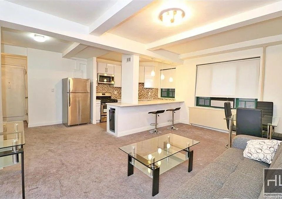 Spacious one bedroom, one bathroom apartment in the Bronx is the perfect blend of style and comfort. With an open layout that offers plenty of space for guests and furniture, this unit is designed for both relaxation and entertaining. The modern kitchen comes fully equipped with sleek stainless steel appliances and features a stylish island complete with a built-in wine cooler, making it ideal for cooking and hosting. Leading into the living room which has large windows and is equipped with a spacious layout. The bedroom is generously sized and can easily accommodate a King or Queen bed, providing a cozy yet refined retreat.