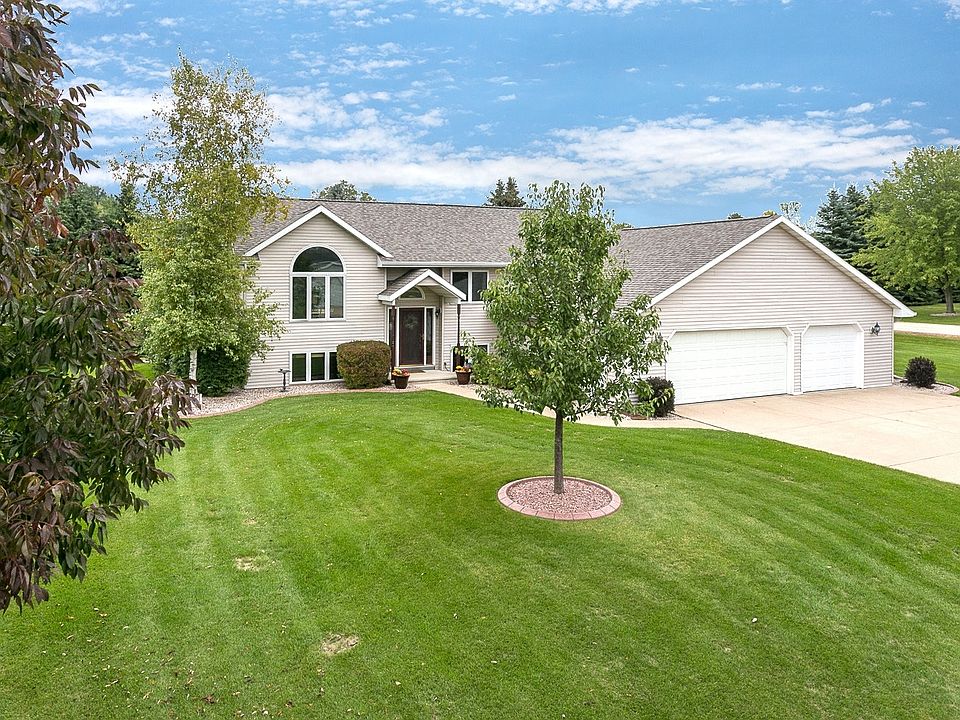 A private tree lined yard and wonderful upgraded finishes throughout! You will love all the features in this three bedroom, three full bath home. Living room with vaulted ceiling opens to modern kitchen with quartz counters, master suite with bath and two closets, finished lower level includes family room with wet bar, fireplace and more. Three car heated garage and a point four acre Town of Algoma lot with large entertaining deck and fire pit.