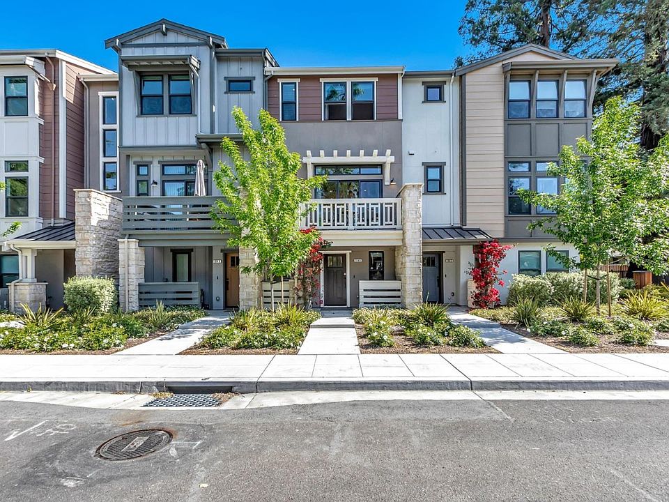 Welcome to this beautiful townhome in Mountain View, built in 2021. High ceilings with an open floor plan encompassing the living room, dining area, and kitchen create a spacious feel. Recessed lighting throughout adds to the ambiance. Enjoy a private balcony on the 2nd floor for outdoor relaxation. The gourmet kitchen boasts quartz countertops, a stunning tile backsplash, stainless steel appliances, and ample shaker-style cabinets. Adjacent to the kitchen is a convenient powder room and in-unit laundry. Upstairs, you'll find 3 bedrooms. The primary en-suite features a walk-in closet, bathroom with double sinks, and a stall shower. On the first floor, a spacious den with upgraded cabinets offers an ideal space for an office or additional living area. Plus, an attached two-car garage with storage spaces and a tankless water heater. Conveniently located near Cal-Train, Google, Safeway, Costco, restaurants, San Antonio Shopping Center, and downtown Mountain View! Top-rated Los Altos High School district. Don't miss this opportunity to call it your home.