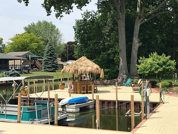 Vacation here 365 days a year!! 2 acres of privacy (wetlands on the North and Middle Harbor to the East with boating Canal South)and a Harbor view, a 30x40 private Boat Well, with 70 feet of wall dockage,and Electric Jet Ski lift.Your friends and family will enjoy a 14x28 in-ground Swimming Pool and sundeck and the huge patio with a real Tiki Hut Bar! Add 32x48' INSULATED AND HEATED GARAGE complete with an Oversized Door for storing the Boat or RV and everyone is satisfied. The well cared for, 4 bedroom home provides unlimited options for your family! The large en suite window-walled, master bedroom with fireplace is currently used as a family room, you choose how you will make it your own! The original family room with fireplace opens to the pool area and large green space and only steps to the garage. The adjacent kitchen and dining area have been completely updated too. Not to mention we have a laundry room with a great view!