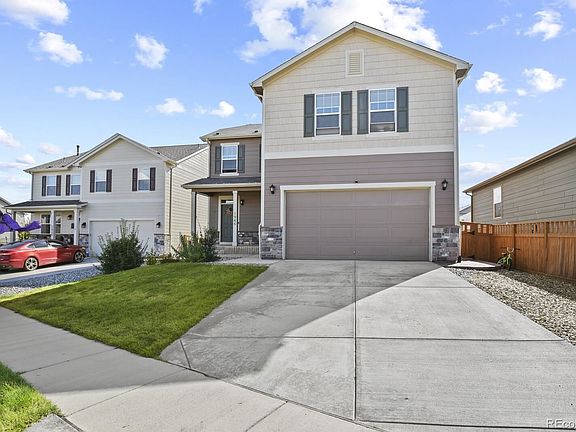 Lovely 2 story home located in Lochbuie CO with easy access to highway 76. This is a great location with the airport being approximately 20 miles away and downtown Denver just about 25 miles away. This whole area has really grown and will continue to grow more! The inside of the home features a lovely open concept complete with 3 bedrooms, 2 baths and a laundry room. The master suite has extra space and an extra closet, which with good planning can even be converted into a 4th bedroom or nursery. It also has a finished garage with insulation as well as custom stamped concrete in the backyard. Sprinkler system is available in both the front and backyard. Come see it today!