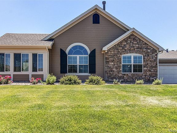 Welcome home! You wont want to miss your chance to own an amazing maintenance free patio home in the Villas at Great Plains Park! This 2 bedroom and 2 bathroom is the largest ranch style floorplan in the community and has so much to offer!! No stairs anywhere in the home and grab bars in both bathrooms make this easy and safe to get around. The main area has a full dining space and living room with a beautiful gas fireplace amazing for those winter nights. The office is a perfect size and has pleasant scenery to view while working. Your Sunroom has many possibilities and with so many windows you wont miss a thing! Enjoy the beautiful Colorado weather on your enclosed front patio perfect for entertaining! The community also has a Clubhouse and Pool so you can host friends and family for a larger gathering! The seller is offering $10,000.00 in flooring allowance so you can make this your own! Schedule your showing today!