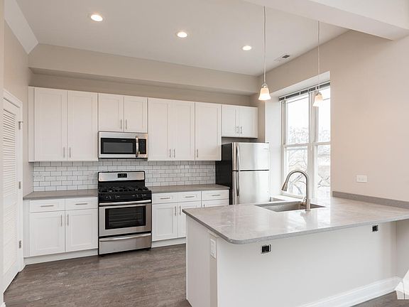 Perfect Location! 1946 S Racine in Pilsen One block from Dvorak Park and Thalia Hall. Right in the heart of Pilsen this unit is walking distance from from the 18th street corridor, near transit, nightlife, bars and restaurants. Near pink and blue lines. Easy commute to loop and northwest Chicago via highway. Inside: 3 bed 2 bath gut rehab. You enter into a large open living room kitchen layout. Living room features great space with plenty of light. The kitchen features stainless steel appliances and new countertops. Features kitchen island with breakfast bar. To the left of the kitchen is the the laundry room. WASHER DRYER IN UNIT. with a bit of space for storage. Central heat and Air! New bath features new tub and tile. Bedrooms feature full closets and great light and space! MASTER BEDROOM features walk in closet and private bathroom. Please email for any requests! Promise response within 24 hrs. Fulton Grace Realty Multiple units available! Ask for Videos! No security deposit.$300 per adult move in fee. Pets accepted with fees.