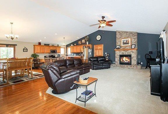 Sharp Ranch with 4 Bedrooms, 3 Baths, 3 Stall Attached garage, Large Detached Garage and a 27' Pool! Open Concept with High Ceilings, Natural Light and Hard Wood Flooring, Trim and Doors. Features include: Large Bedrooms, Nice Sized Closets, Zoned HVAC, Pella Windows, Gas Fireplace, Main Floor Laundry, Radon Mitigation System and Lots of Storage!