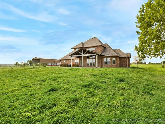 Welcome to a lifestyle upgrade. Cross the threshold of the gated entrance to this immaculate stunning two-story home situated on 7 (MOL) acres that consists of 5 spacious bedrooms and 3 bathrooms, perfectly designed for comfort and functionality. As you step inside, you're greeted by vaulted ceilings and a cozy fireplace that sets a warm ambiance throughout the living space. The heart of the home features a beautiful kitchen with granite countertops and comes complete with all appliances, ensuring a seamless move-in experience. Retreat to the master ensuite, where you'll find a generously sized bedroom, an ample size bathroom with double sinks and a garden tub. A vast walk-in closet provides all the storage space you need. One of the bedrooms is ideal for use as an office if that is your preference, catering to those who work from home. Additional highlights include a utility room with an abundance of cabinet space and a laundry sink, a secure safe room, and a covered back patio perfect for outdoor entertaining. This home also comes equipped with a new roof, all-new storm windows through out the whole house and gutters. Situated on a corner lot, this property also features 2-car garage with a carport, plus a 30x60 carport ensure plenty of space for your vehicles, while the property lies within the coveted Lone Grove School District, just outside city limits and behind a gated entrance. Escape the ordinary and experience the epitome of luxury rural living.