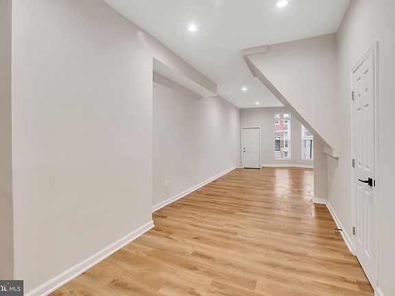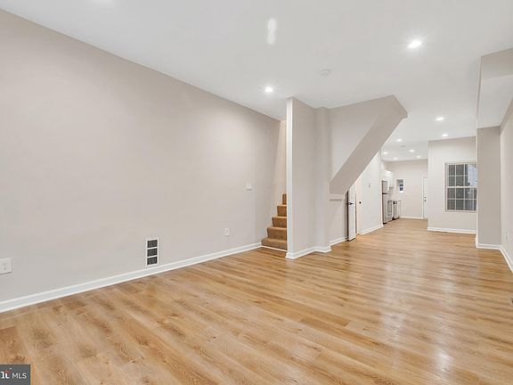 This rowhome features an open layout with 4 bedrooms, 2 full bathrooms, a half bath, and 1900 square feet of living space. The kitchen has ample cabinet space, modern countertops, and stainless steel appliances. The finished basement provides extra room. Other highlights include attractive floors, high ceilings, recessed lights, and custom built-ins. Experience an upscale living at a reasonable cost.