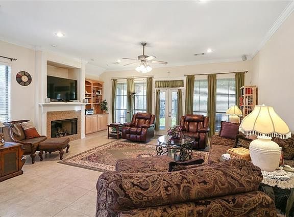 LIKE NEW HOME IN PRIVATE GATED COMM OPEN FLOWING FLOOR PLAN W SOARING CEILINGS ENTERTAIN ON ONE OR BOTH PATIOS OPEN FROM LIVING AREA. FEATURES SURROUND SOUND, MASTER SUITE WITH SEPARATE JACUZZI TUB, WALK IN SHOWER, LARGE EAT IN KITCHEN. FLOORED ATTIC IN GARAGE. FLOOD ZONE X MOVE IN READY ENERGY EFFICIENT SOLAR SCREENS, STORAGE SHELVING & FLOORED IN GARAGE ONE YEAR HOME WARRANTY. FLOOD ZONE X, N=MOVE IN READY AND HOA FEE QUARTERLY.