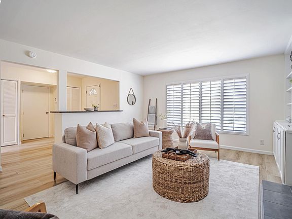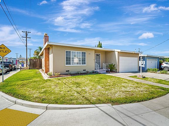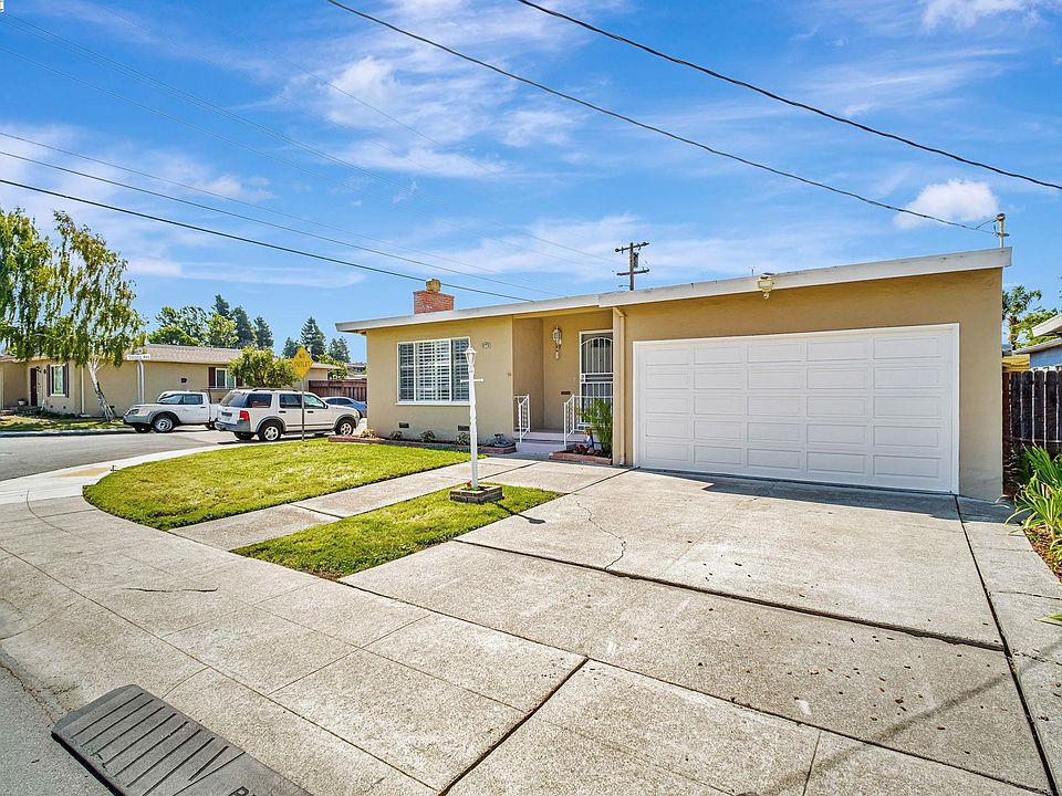 A warm, comfortable & charming home with 3 bedroom,2 baths and approx. 1582 sq. ft. Excellent layout with lots of natural lights. Fresh interior custom paint throughout. Move in condition with brand new top quality flooring throughout. Spacious living room with built-in shelves over cozy fireplace. Wood shutter blind throughout except 2 bedrooms. Gourmet kitchen with new refrigerator, granite countertops with lots of cabinets. Skylight in kitchen & both bathrooms. Dining room with new ceiling light. Hugh family room off to a relaxing deck, low maintenance back yard with sparking pool to entertain your friends & family. Just steps from 880/92, park, schools, shopping Malls and restaurants.