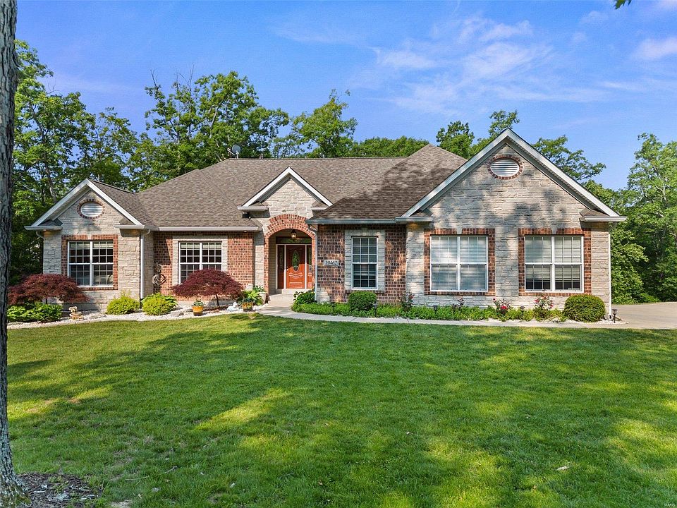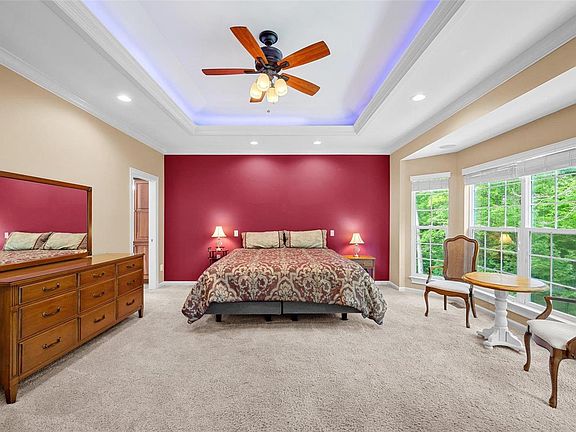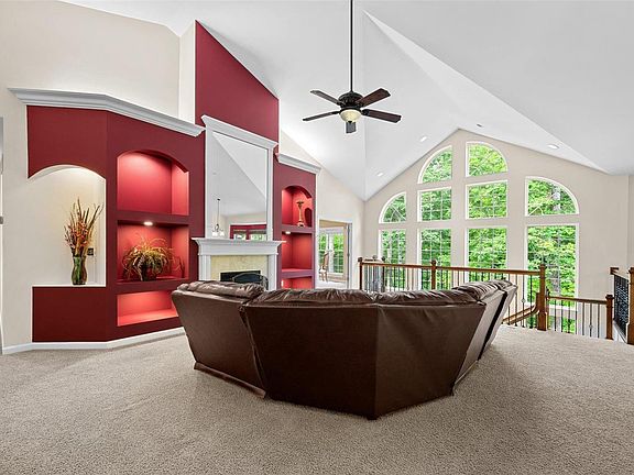 Stunning 4 BD 3.5BA hm on 3 wooded acres just 4 mi from I-70. A custom home featuring 9ft ceilings thru-out & 9ft pour, Great RM w/reverse vault ceiling, gas frpl, built-ins, open oak staircase w/wrought iron spindles & spectacular view out the floor to ceiling atrium windows. Kit w/LG center island, granite countertops, 42 custom wood cabinets (staggered w/crown), vaulted ceilings & plant shelves, Hearth rm w/crown & stone wood burning frpl & walks out to Lg deck, MAIN FLOOR LAUNDRY L w/cstm cabinets, dining rm w/custom wains coating, chair railing & bay, Owner suite w/French doors, bay windows, coffered ceiling w/crown & lighting, ensuite lux bath w/walk-in closet, garden tub, adult height sinks, shower w/seat & rain shower. LL w/rec room, wet bar, customizable shelving, family rm, 1 possibly 2 bedrooms (1 is technically an office), full bath and walks out to a 60x15 +/- patio, 2 car side entry 30x24 & detached 32x24-3 car garage w/220amp electric, mature landscaping. So many extras Additional Rooms: Mud Room