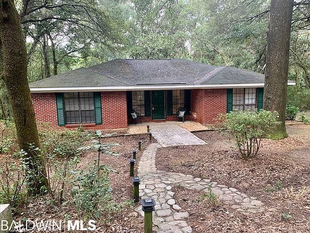 Wait no more! This single-story brick home on one acre in Silverhill is ready for a new owner! The Interior has freshly painted walls, new carpet installed in the Bedrooms, and a new hot water heater. Roof is only 3 years old. This home offers a Great Room with a vaulted ceiling, Split Bedroom plan, tile floors in main areas, large screened porch overlooking private backyard, a large Workshop on a concrete slab, separate outdoor storage building, and a detached car shelter. No HOA! All information provided is deemed reliable but not guaranteed. Buyer or buyer's agent to verify all information.