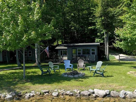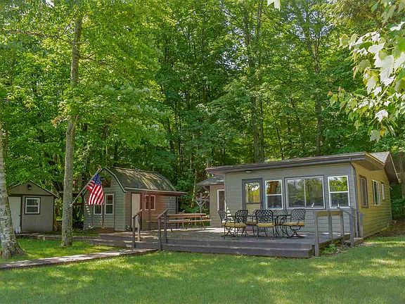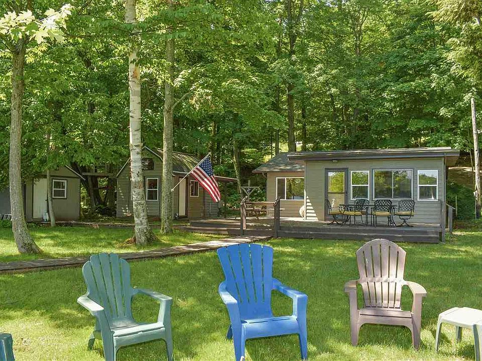 Rare opportunity to own a large private parcel with direct frontage on Lake Ann. This updated 3 bedroom, 2 bath cottage sits on two and a half lots with 245 feet of hard sandy bottom and also includes an additional vacant lot across the road. Need extra space there is a bunkhouse that sleeps 6. The waterfront is mostly shallow, perfect for little ones, or you can dive off the end of the dock and swim to the raft. Enjoy the sunrise and beautiful views of the lake from inside, outside on the large 500+ sf deck, or while relaxing on the dock platform. This comfortable home features on open kitchen, dining, living room with large windows for great views and natural light. This cottage is within walking distance, or a short drive, to the Lake Ann Pathway, featuring hiking, mountain biking and cross-country skiing in the winter. This cottage is just a few miles to popular downtown Lake Ann, 11 miles to the world famous Interlochen Center for the Arts and 17 miles to downtown Traverse City. This can be purchased with an additional vacant lot across the road. See MLS# 1872403