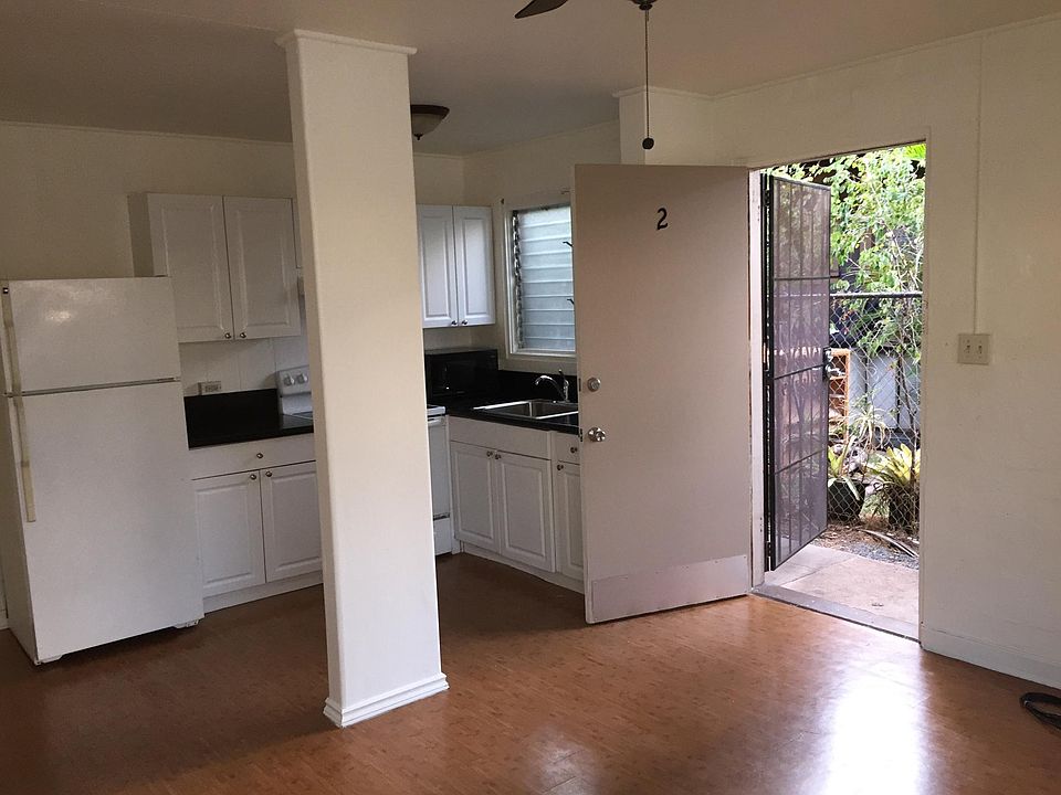 Excellent 1 bedroom unit available now. Very Clean and ready to move in!, new paint, finished floors and spacious. Unit has refrigerator and microwave with washer and dryer on site. Beautiful walk to Waikiki shops. For Showing please call 216-4681