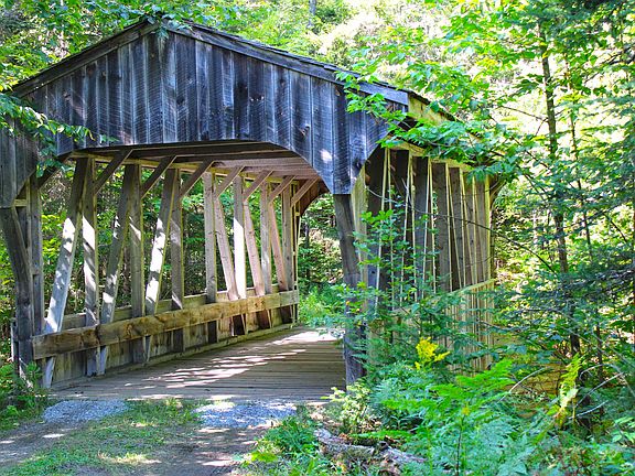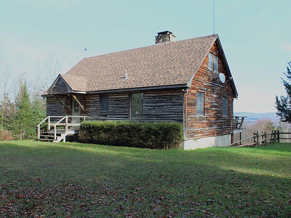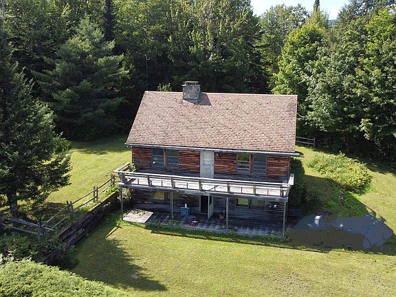 What a spot - This log/stick built home is situated right in the middle of 72+ acres with gorgeous views and complete privacy. Acreage this size is hard to find with mountain views, a lovely pond, and its own covered bridge over Snider Brook, enjoy the waterfalls and peacefulness that come with it. This would be an ideal hunting camp, or quiet summer getaway. The home has 2 bedrooms, a large loft and additional finished area in the basement to accommodate many guests if needed. 2 Full baths and a 3/4 bath complete the finished area. The shingled roof was just replaced in 2023 along with new basement flooring and paint. Heated with electric heat and the wood fireplace in the living room. A drilled well, and conventional septic round off the mechanical systems. If storage is needed, the detached garage provides ample space. To be sold with the current furnishings. Located 11 miles from Jay Peak Resort and 20 minutes to Downtown Newport.