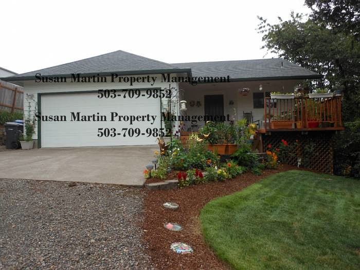 Absolutely gorgeous! Hilltop house in West Salem at the corner of Turnage and Crozer streets. 3 bedrooms, 2 baths, walk in closet, hardwood floors, open kitchen and dining room and living room for easy entertaining! Deck in front and deck in back! Surrounded by lush, green, manicured lawn and edged by fruit trees! Not fenced, gas heat, sliding glass doors lead to deck, bright windows, washer dryer hookup, 2 car garage, Side gravel parking for small RV or boat, small pet welcome with prior approval. Schools are Chapman Hill, Walker & West Salem High. $1495 per month, available September 1, 2106, security deposit is 100% refundable if you leave it like you found it. Applicants must pass a background check. No adverse criminal or eviction history. No smoking, vaping or marijuan. Call Susan 503-709-9852 Minimum 1 year lease