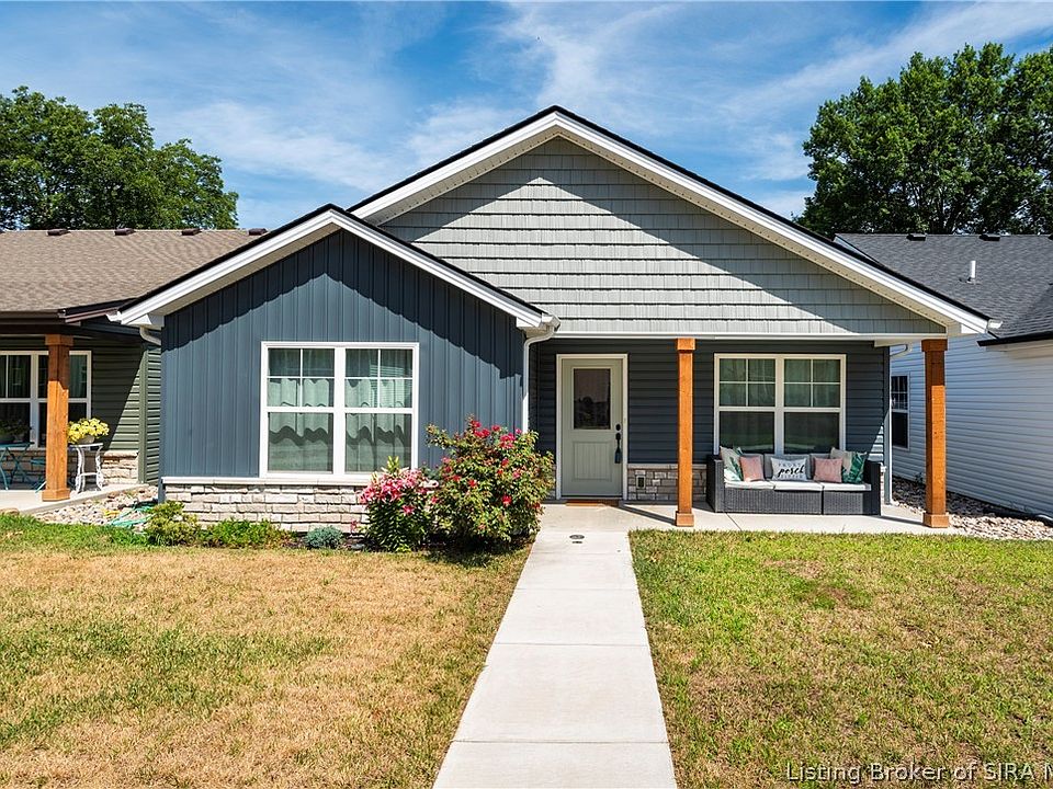 OPEN HOUSE THIS SUNDAY, 8/4 - Come tour this MOVE-IN READY home from 2:00-4:00PM! YOU'LL LOVE COMING HOME to 1947 Fisher Lane! A lovely, low-maintenance single-family home completed in 2022 features 3 bedrooms, 2 full baths, with rear entry 2 car garage. Open concept living, the vaulted living room is open to the kitchen with ample cabinets and stainless appliances that will remain, island with breakfast bar, and large dining area that has lots of light from the energy efficient windows. The laundry is conveniently located in a large closet in the hall bath. LVP flooring throughout the home. The covered front porch overlooks the neighborhood’s common green space and is a great space for relaxing with your cup of coffee in the morning and enjoying the evening breezes. This quiet neighborhood is tucked away in a residential area that is conveniently located with easy access to downtown Jeffersonville, shopping and restaurants. Just blocks away from Perrin Park and the Jeffersonville Aquatic Center. THIS HOME IS PRICED TO SELL! Call to see this one TODAY!