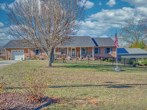 Custom built by owner/builder (now retired) brick ranch. Large rooms throughout, huge master bedroom with bath - whirlpool tub. Kitchen has gas range, stainless steel refrigerator and microwave. Full basement with nice bathroom, bathroom shown in photo gallery. 2 Car garage and large RV port. Gas wall heater built in basement. The 1.4 acres are a portion of 38 beautiful level acres, will be surveyed off ASAP. Home has two driveways one to main level to one car garage. Sellers will maintain an easement to back of property on existing driveway, the basement side driveway as it leads to sellers other 2 homes in back of 38 acres. There are two water meters aby the road. One for 1947 and another for sellers other home in back. Buyers have choice to offer easement for 2nd meter or seller will move meter to their other home.