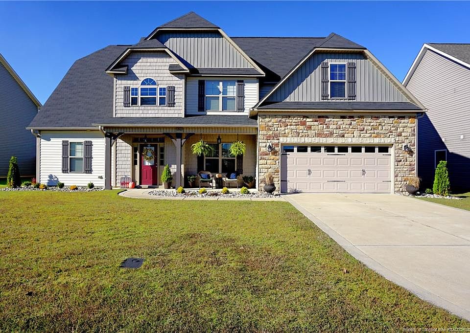 VILLAGE AT ROCKFISH $306,000 5BR/3BA. THIS OPEN AND METICULOUSLY KEPT TWO STORY HOME BOASTS 5 BEDROOMS AND A LARGE BONUS ROOM WITH 3 BATHROOMS. THERE IS A LARGE FORMAL DINING ROOM WITH COFFERED CEILINGS, GRANITE COUNTERTOPS, AND A BREAKFAST AREA IN THE KITCHEN THAT BACKS UP TO A WINDOW OVERLOOKING THE BEAUTIFUL STONE DECK AND FIRE PIT. ALL OF THE BEDROOMS ON THE SECOND FLOOR HAVE WALK IN CLOSETS. THERE IS A HUGE STORAGE ROOM ON THE SECOND FLOOR THAT WOULD BE PERFECT FOR A HOME GYM! THE HOME HAS NEWER CARPET, PAINT, AND FLOORING AND RECENTLY INSTALLED STAINLESS STEEL APPLIANCES. LARGE BACKYARD WITH PRIVACY FENCE THAT BACKS UP TO WOODS. LOCATED IN A QUIET NEIGHBORHOOD WITH A COMMUNITY POOL.(1947H)