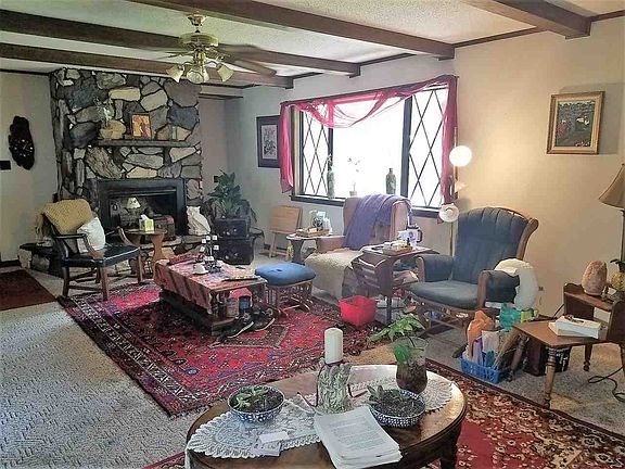 Country Living Close to Town! 4 Br 3 Ba home on 3 acres m/l. Nice large living w/gas fireplace, open to kitchen w/built in desk, all appliances, Eat-in kitchen- out to open deck and fenced in back yard. Master suite w/ separate entrance & mini porch - could be an apt or mother-in-law suite. 3 additional bedrooms w/2 more baths. Covered front porch, attached carport, storage building-all on a park like treed lot!