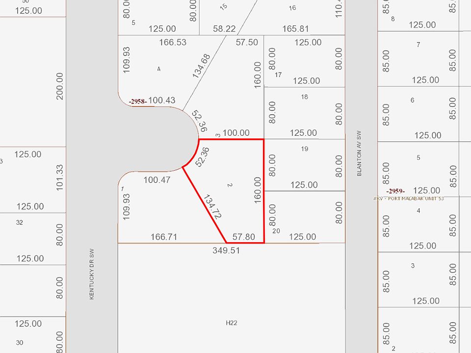 Site Address: 1947 and 1955 Kentucky Dr SW Palm Bay FL 32908Parcel ID: 29-36-22-KV-2958-2 and 29-36-22-KV-2958-1Port Malabar Unit 53Utilities: NonProperty Taxes 2016: $28.50 per lotOver-sized 0.66 acre Vacant Lot Zoned Residential. These side by side lots are conveniently located near the new under construction Palm Bay Parkway. Only minutes to Publix Shopping and the Westside Elementary and Bayside High Schools. There are no utilities available in this area yet, therefore there is no construction allowed in the area for now, with the cities growth and once power lines are taken out, this will make for a great home-site. Seller will consider selling with terms! (short term financing, no interest)Price advertise is per lot, both lots must be purchased together.