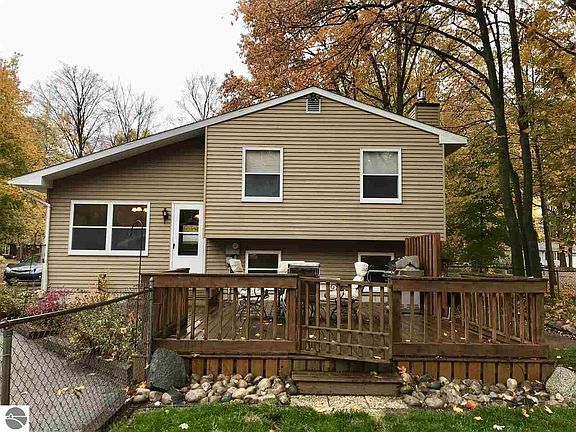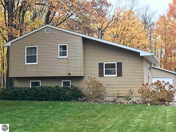 Well maintained home in a great neighborhood between Traverse City and Kingsley. This home sits on an acre of land with the private wooded back area having frontage on Garfield Rd. There is a large deck and a fenced back yard for the warm days and a gas stove in the updated family room for the chilly days. The insulated two car garage and a lower level finished bonus room are ready for your imagination. Quality wood flooring everywhere except for two bedrooms. 80 acre protected land for your walks located around the corner and the Boardman River is nearby.