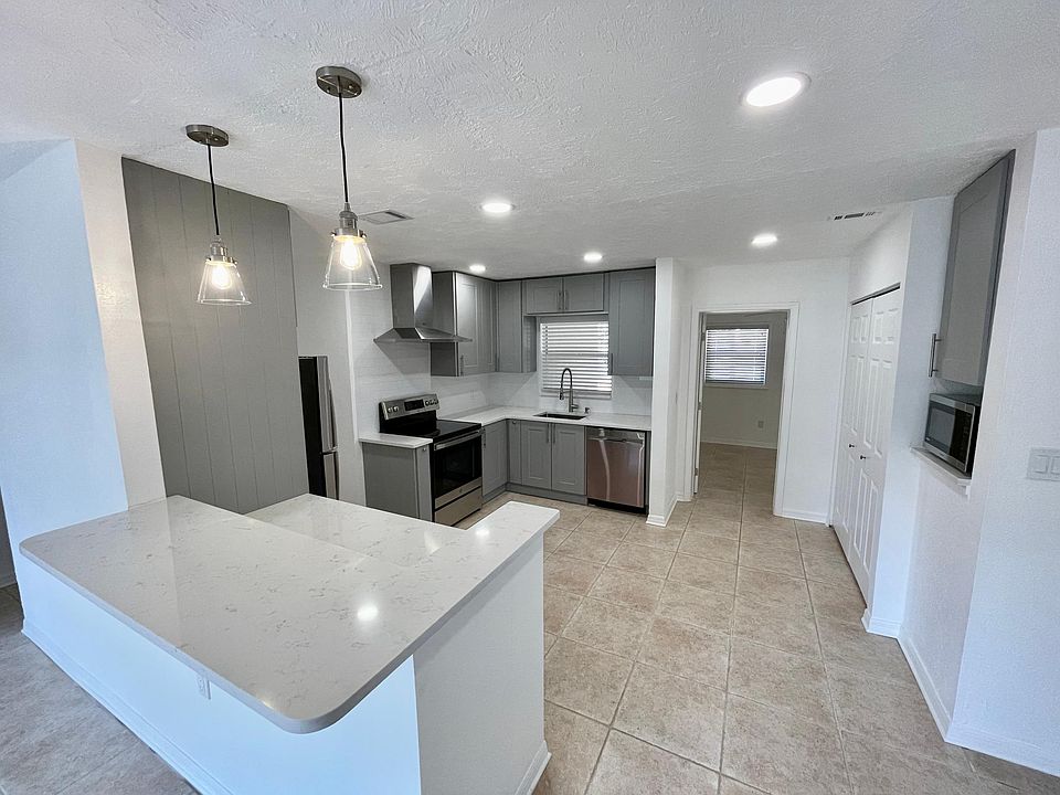 Freshly painted home with new appliances, updated kitchen and bathrooms. Tile floors through out, garage parking, indoor laundry, fenced in back yard, Pet-Friendly! Desirable location "West of the Trail" walking distance to Southside Elementary school, Sarasota Memorial Hospital and the Southside village. 10 Minutes to Famous Siesta Key Beach or Downtown Sarasota. Move In Ready! Owner pays for lawn maintenance. Renter responsible for Electric, Water and Internet/Cable TV. First & Security due at signing. Security Deposit equal to 1 month's rent. No smoking allowed.