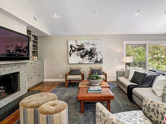 On a private street in desirable lower Mandeville. Single story home with great canyon setting. This remodeled 4 bed 3 ½ bath 3,034 sq ft home sits on an expansive almost ½ acre (21,684 sq ft lot) Oak floors throughout. Light and bright living room with large windows looking out to expansive yard. Large master bedroom on left side of home and 3 other bedrooms are on the right side of the home. Kitchen has been all redone with Caesarstone counters and stainless steel appliances. All baths have all been updated except for master bath. Attached 2 car garage plus 4 additional parking spaces. Large sport court to right of home, plenty of room for a pool. On sewer system. Schools options include- Brentwood Science for Kindergarten, Kenter Elementary for K-5. Also Pali Elementary for 1st-5.