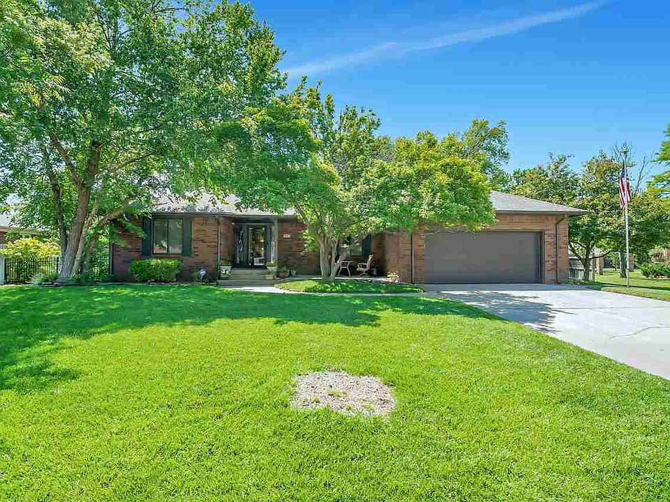 Beautiful home on a quiet established cul-de-sac in the Indian Hills Riverbend area of Wichita. This home has it all.... great curb appeal, beautifully landscaped yard with sprinkler system and well, and an all brick surround. Inside features a large kitchen with a view into the living room, stainless steal appliances, water filtration system, vaulted ceiling with oak wood beams, gas burning fireplace, split bedroom floor plan, and main floor laundry with wash sink. Master bedroom features a his and hers closet and a full bathroom. All bathrooms have been completely remodeled.Basement features a wood-burning fireplace with a gas starter, 1 bedroom with an egress window, 2 additional bonus rooms/ office, and an extra storage room. The large backyard features a new composite deck with covering, privacy fence, mature trees, new shed built onsite, and a chicken coop fully stocked with chicken ( can stay with the home). This home is one of a kind and and just waiting for you!