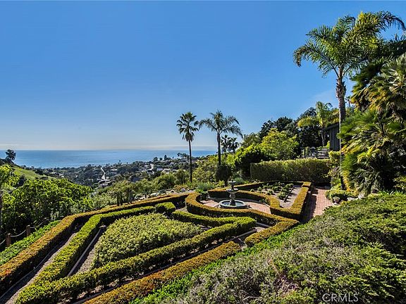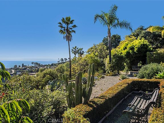 On the market for the first time in decades, 1947 Rim Rock Canyon offers a singular opportunity to own an ultra-private 1.8-acre compound with expansive ocean and canyon views. This largely flat parcel in a prime Temple Hills location features incredible panoramas from nearly every corner - an ideal canvas for those looking for an opportunity to build a dream estate. As secluded as it is tranquil, this property is accessed via a gate at the end of a long, gently sloping driveway. Beyond it, the terraced lot offers meticulously manicured grounds with several lookout areas, creating the ultimate tranquil haven. The main structure exudes charm, with cottage architectural details and weeping mortar accents. Landscaped with care, the vast grounds feature multiple stone patios and gravel walkways, creating an idyllic setting for enjoying nature. The front English-style garden, with a maze of precisely maintained hedges, is anchored by a central fountain. While removed from the bustle of the city itself, this one-of-a-kind estate offers easy access to Laguna Beach’s renowned galleries, boutiques, restaurants, and beaches.