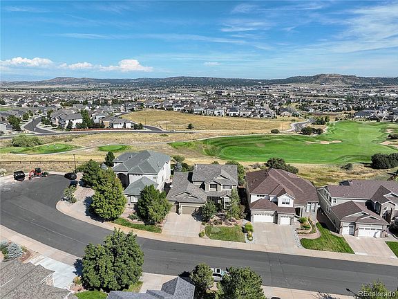 This beautifully updated home is located on a cul-de-sac and backs to the 1st hole of the Red Hawk Golf Course on a large .21 acre lot with beautiful mountain and golf course views! With over 4,500 sq ft of finished living space featuring 5 bedrooms, 5 baths and a finished basement you will have ample room for comfortable living. You will fall in love as you open the front door to the wide-open floor plan with 2-story vaulted ceilings in the living room, complemented by an abundance of windows showcasing panoramic mountain views! The gourmet kitchen boasts slab granite counters, a glass backsplash, and stainless-steel appliances, creating a functional as well as visually appealing space. The primary bedroom is located on the main floor, featuring vaulted ceilings, a 5-piece bath and walk-in closet. The main level office with French doors sits directly off the foyer for a dedicated main level workspace. A wide sweeping staircase with iron railings leads you upstairs, where you'll find 3 additional bedrooms and 2 full baths plus a large loft that could be used as a 2nd office space. The professionally finished basement offers a 5th bed and 3/4 bath, as well as a family room with fireplace, an open bar area, a spacious recreation room with a pool table, and an exercise space. Stepping outside, you will enjoy spectacular sunsets on the stamped concrete patio with a fire pit and hot tub. Miles of hiking and biking trails and the acclaimed Phillip S. Miller Park (MAC) are nearby. Stroll through the quaint but revitalized old downtown Castle Rock and you'll find a variety of amenities, including an array of restaurants and shops as well as Festival Park where you can attend an Art Fair, a Farmer’s Market or enjoy an outdoor concert. Easy access to I-25, and halfway between Denver and Colorado Springs, makes this location ideal and close to everything for a well-rounded lifestyle. (NOTE LOW TAXES & ASSUMABLE VA LOAN AT 2.43% - MUST HAVE YOUR OWN ELIGIBILITY!)