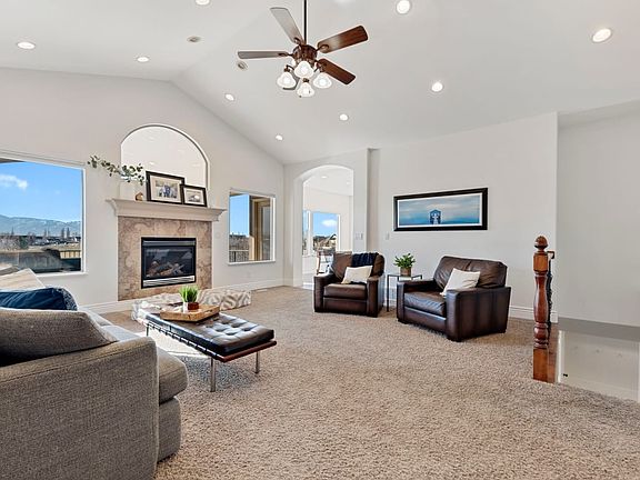 This home features vaulted ceilings and beautiful mountain views. Finished walkout basement and a bonus room provide additional living space and storage. Backyard includes garden with watering system and fruit trees, and opens onto a park with tennis courts, picnic area and playground. Other home amenities include central vac, humidifier, water softener, custom cabinets and granite counters. Within walking distance to great elementary school and convenient access to shopping and I-15.
