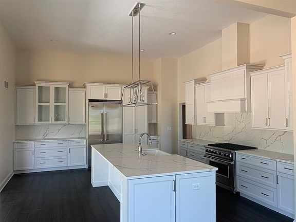 Custom, pre-sold designed and built by Edgebrooke Homes-Ryan Dolan in Stoney Creek North. Spacious Kitchen with upgraded SS appls, oversized island, quartz counters & backsplash and walk-in pantry. Formal Dining w/ wainscotting & crown molding. Open Great Room with stone, gas lit fireplace, built-ins, and vaulted ceiling. Main flr den/office w/ crown. Finished, walk-out basement with custom brick floor to ceiling fireplace, full wet bar w/ cabinetry. 3 car attached garage and composite deck. PV Schools.