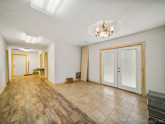 Lots of potential with this red iron framed metal house. Was a church that has been turned into a house. Very large living, dining and kitchen area. Large enough that a master bedroom could be installed that the same area as the living room. Sellers will have some handyman work done. before selling. Actual acreage is be determine by a Pin & Stake survey. Bolt Fiber is the internet.